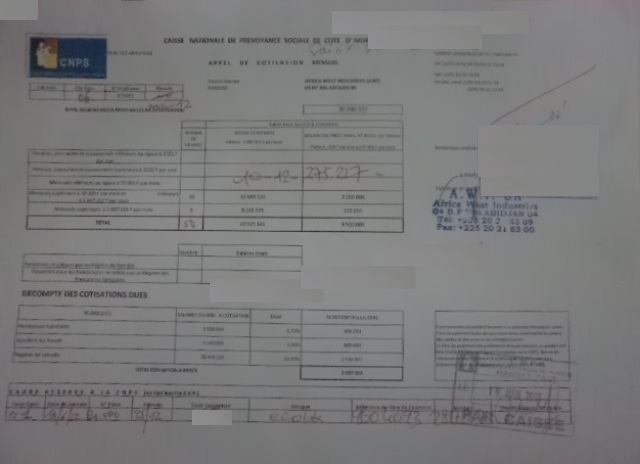 Formulaire d'appel de cotisations |