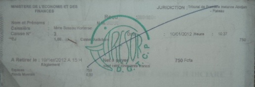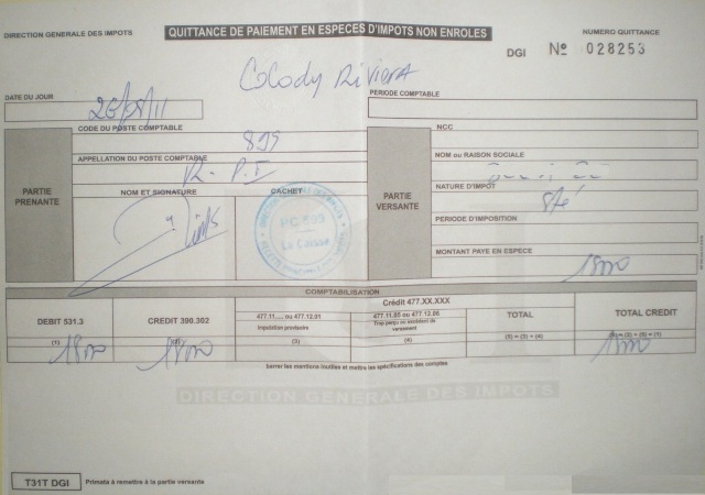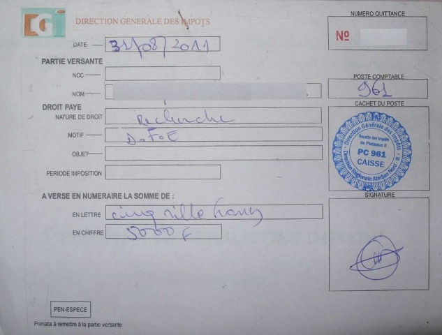 Reçu de paiement - frais de la déclaration fiscale d'existence |