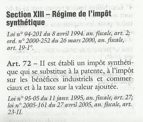 sur la cotisation de l'impôt synthétique lorsque le chiffre d'affaires n'excède pas 10 000 000 FCFA