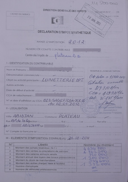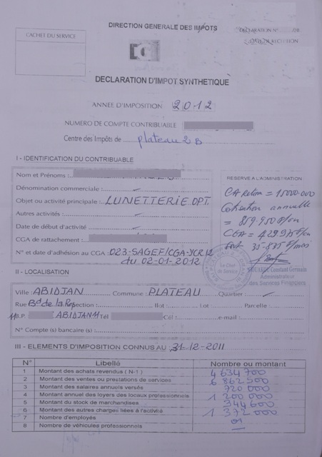sur la cotisation de l'impôt synthétique pour les contribuables dont le chiffre d'affaires n'excède pas 10 000 000 FCFA