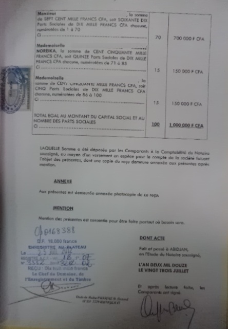 Déclaration Notariée de Souscription et de Versement enregistrée 01 - Déclaration Notariée de Souscription et de Versement enregistrée